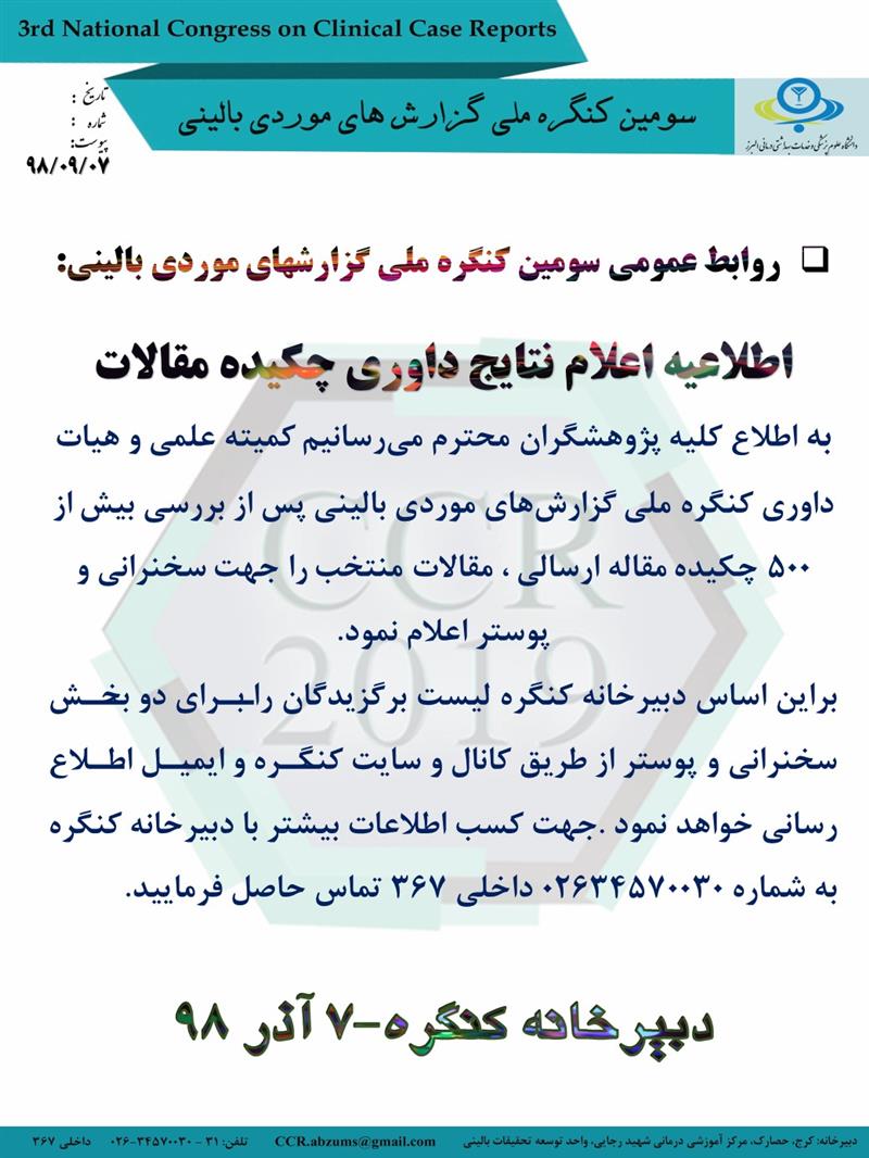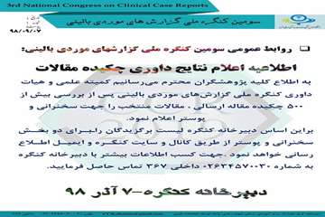 کمیته علمی و هیات داوری کنگره ملی گزارشهای موردی بالینی پس از بررسی بیش از 500 چکیده مقاله ارسالی، مقالات منتخب را جهت سخنرانی و پوستر اعلام نمود.