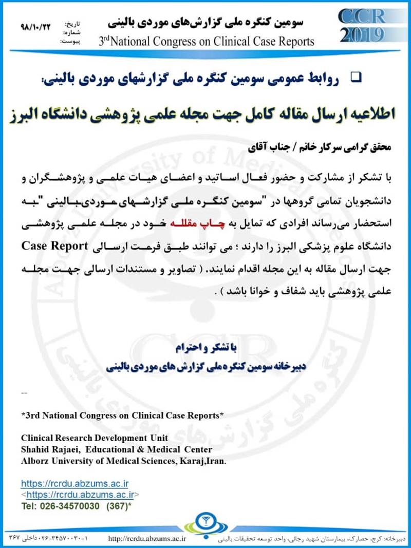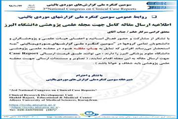 اطلاعیه فرمت ارسال مقاله كامل كنگره ملی گزارشهای موردی بالینی در مجله علمی پژوهشی دانشگاه علوم پزشكی البرز