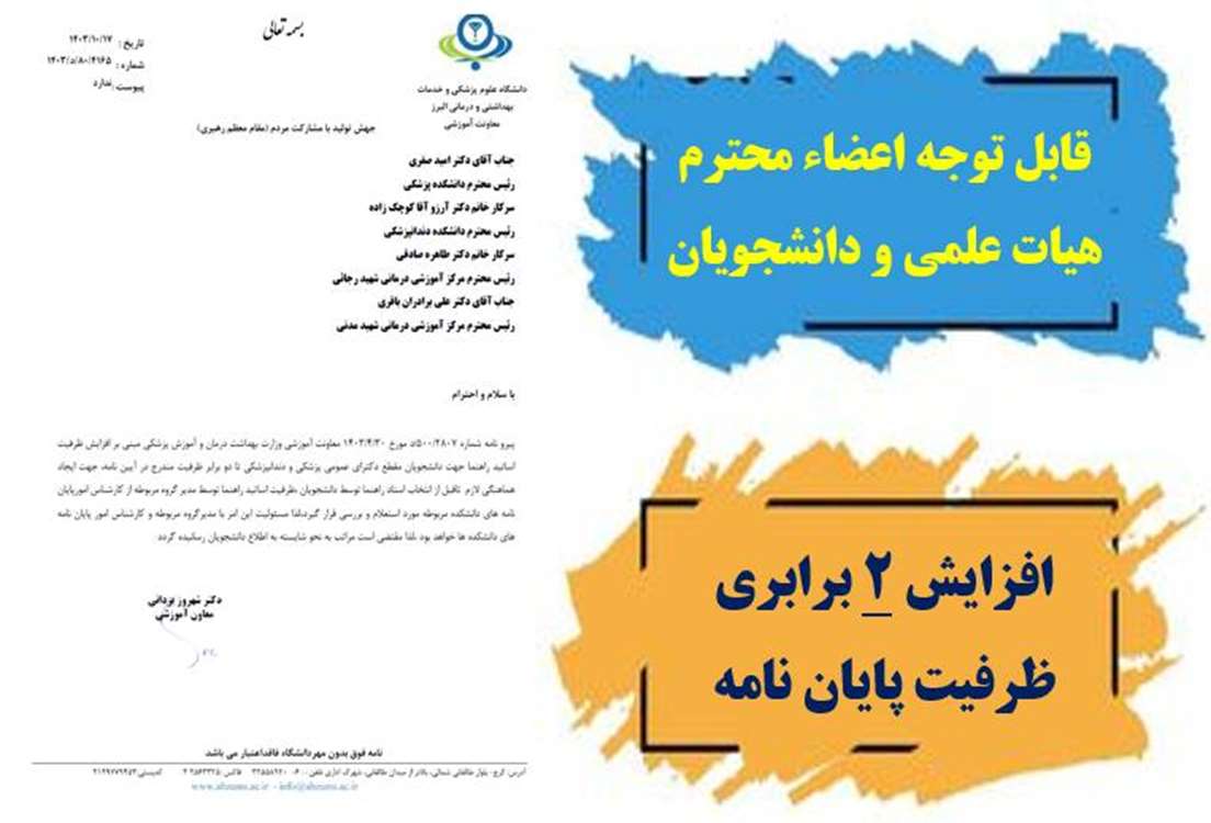 افزایش دو برابری ظرفیت پایان نامه های اساتید و اعضای هیات علمی