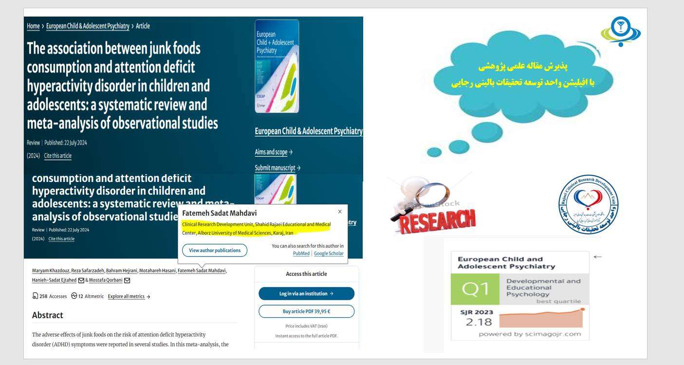 پذیرش مقاله علمی پژوهشی با افیلیشن واحد توسعه تحقیقات رجایی