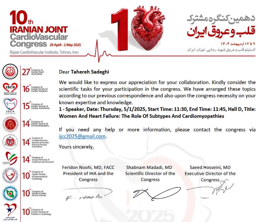 پذیرش مقاله در دهمین کنگره مشترک قلب و عروق ایران