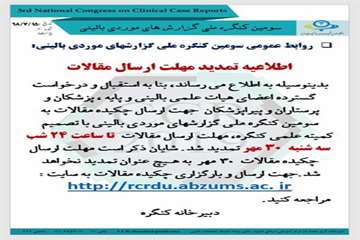 اطلاعیه تمدید تاریخ ارسال مقالات كنگره گزارشهای موردی بالینی