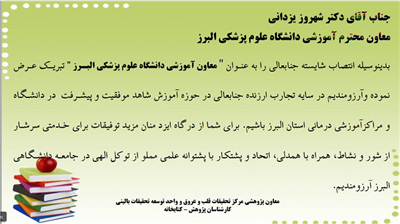 براساس 3 حکم جداگانه از طرف جناب آقای دکتر کریم؛ ریاست محترم دانشگاه علوم پزشکی البرز