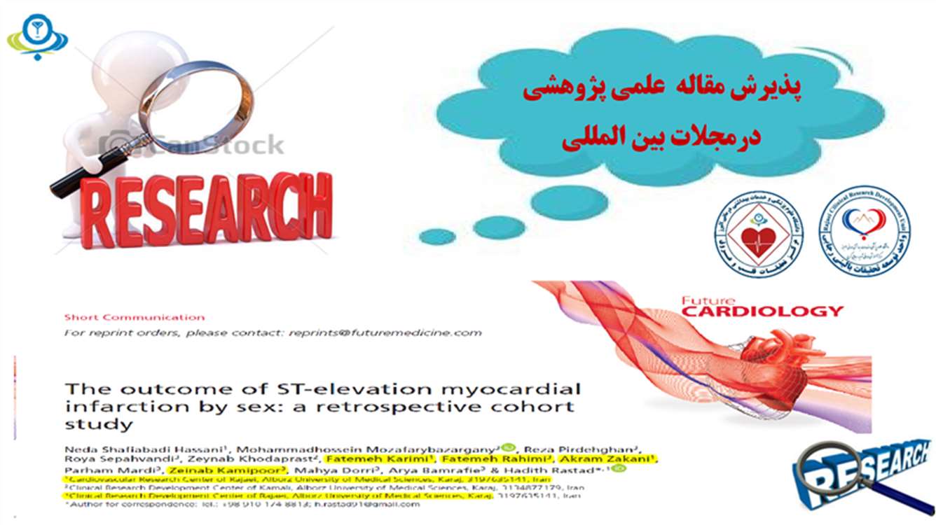 مقاله علمی پژوهشی در مجلات بین المللی با افیلیشن مرکز تحقیقات قلب و عروق و تقدیر و تشکر واحد توسعه تحقیقات بالینی رجایی پذیرفته شد.