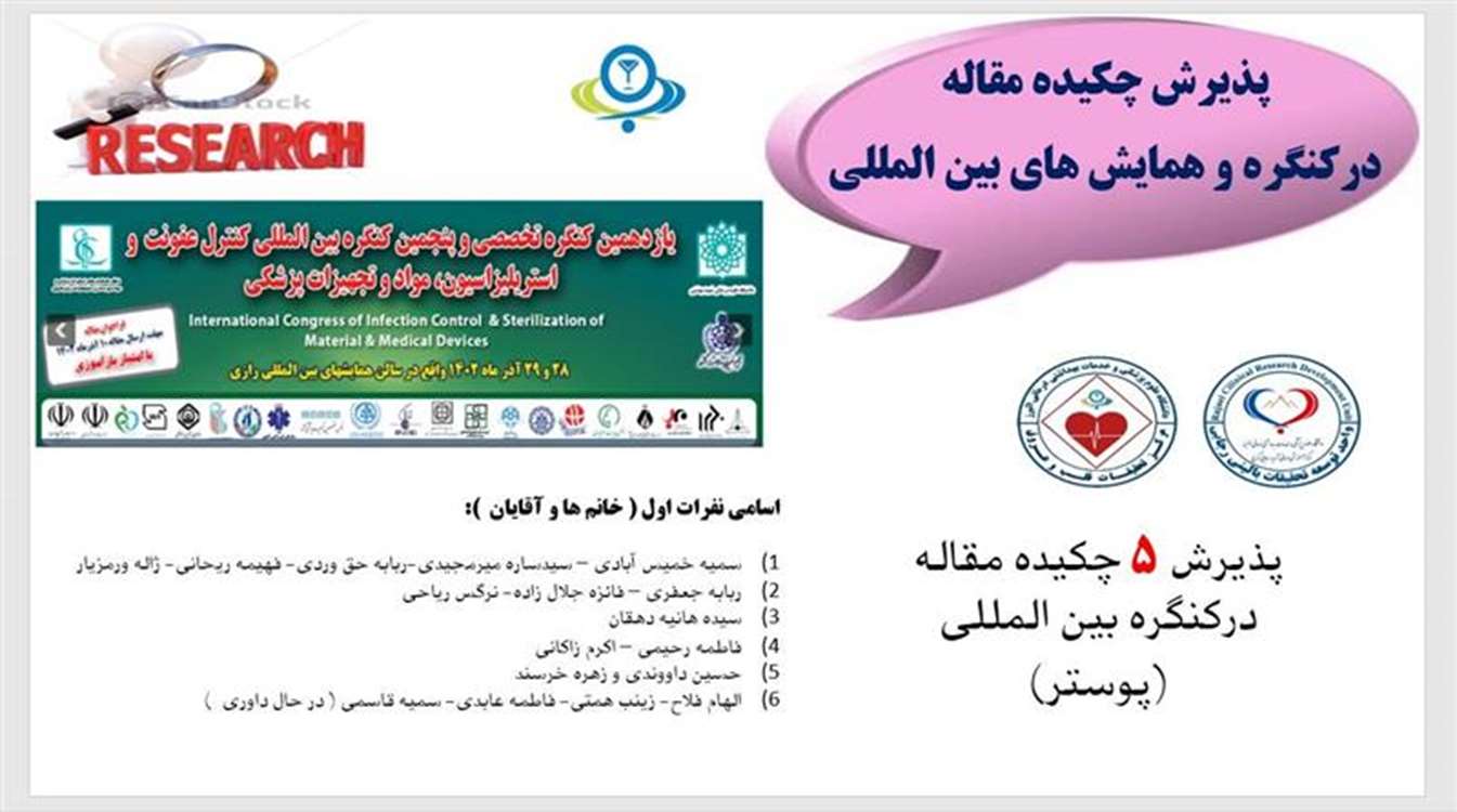 پذیرش 5 چكیده مقاله در همایشها و كنگره ی بین المللی