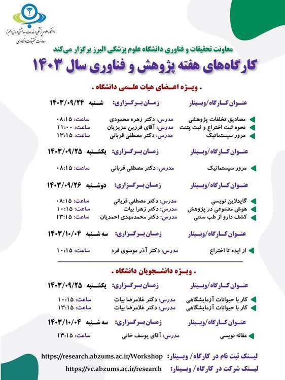 اطلاع رسانی کارگاه های معاونت تحقیقات در هفته پژوهش 1403